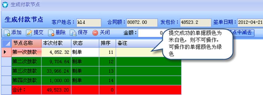 【添加】點(diǎn)擊添加按鈕,可添加撥款節(jié)點(diǎn),如下圖所示:添加付款節(jié)點(diǎn)后點(diǎn)擊保存即可。