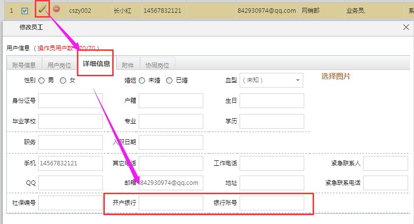 依次點擊:系統設置---部門/用戶---員工管理---修改資料