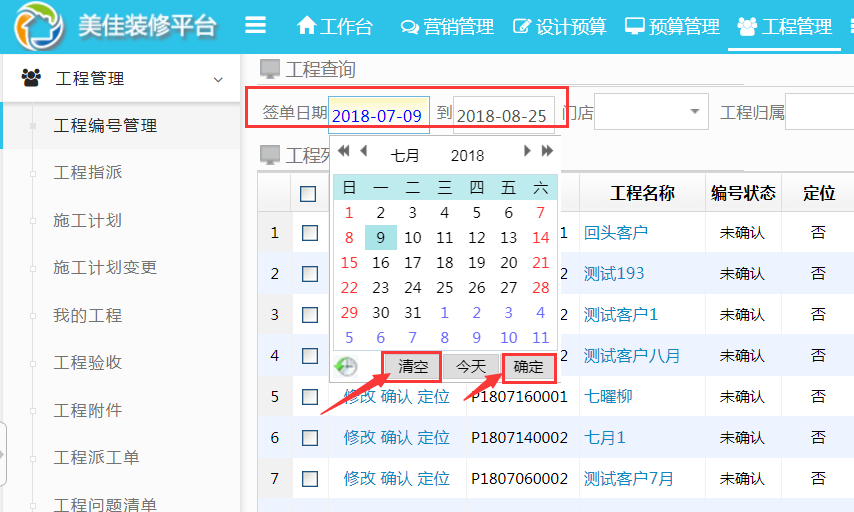完成此項操作后可在工程管理---工程編號管理查看簽單客戶的工程編碼,也可根據簽單時間查詢相關