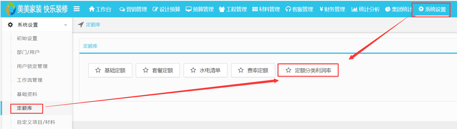 2、依次點擊系統設置--定額庫--定額分類利潤率