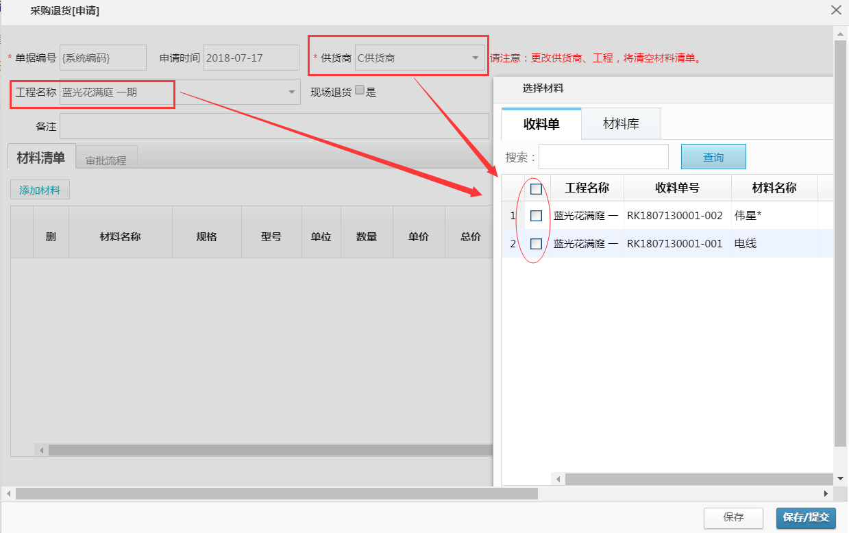 當我們在材料退貨和倉庫退貨時,是否會遇到眾多材料中哪個材料才是此工程需要退回的呢?為了給大家完美的解決關于退貨選材料的的事情,美佳技術人員針對材料退貨做了如下優化,還在等什么,快來一睹為快吧!
