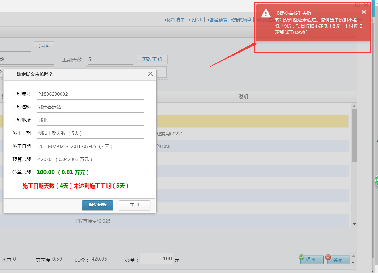 預算審核工作流增加簽單金額及其他數據打折率限制,如果超出當前設置的折扣則不能提交