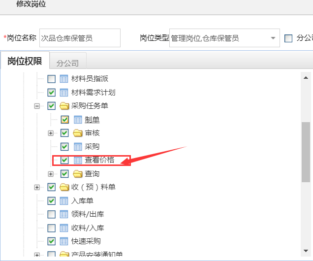 首先通過系統(tǒng)設(shè)置---部門/用戶---崗位管理---材料管理---采購任務(wù)單--查看價格勾選