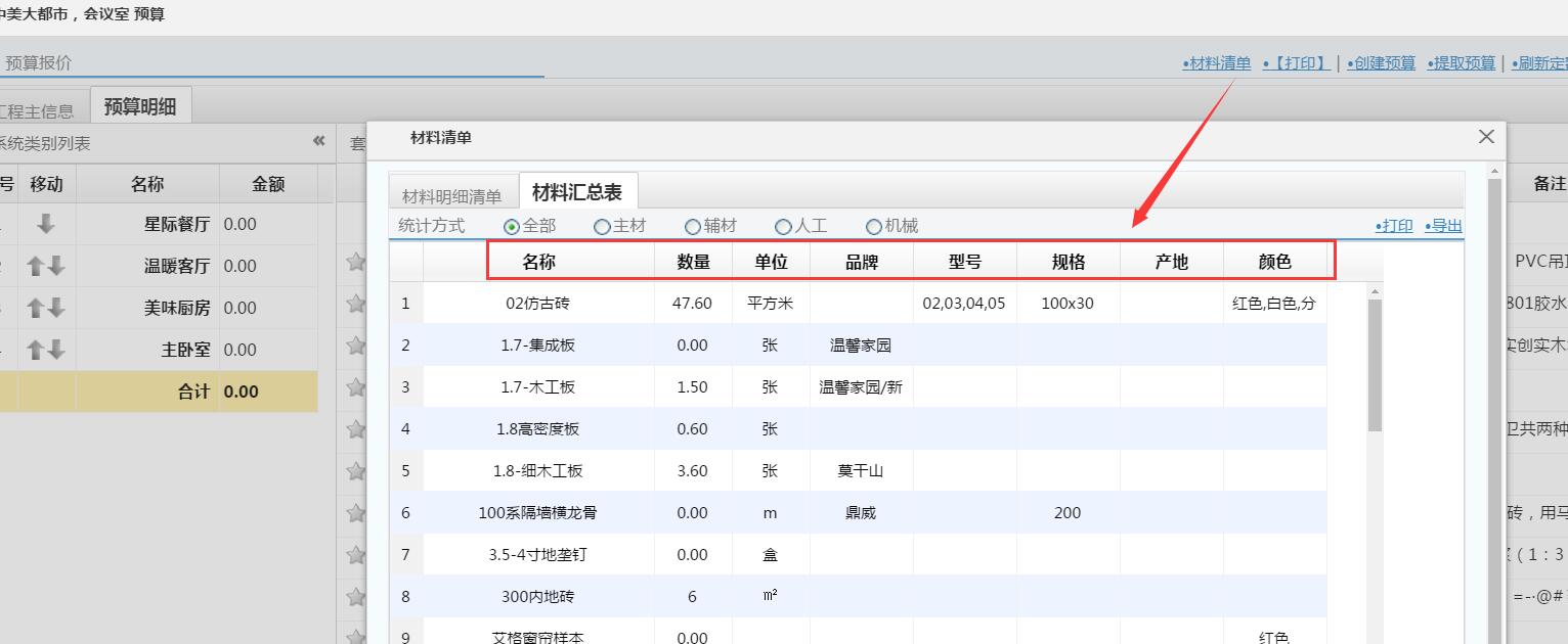 美佳裝飾管理軟件,功能最靈活的管理軟件,近期更新:預算報價界面新增表格排序。在“預算明細、材料清單、預算—定額選擇”三個界面可自定義主信息顯示順序及顯示寬度、是否顯示等內容,有效提升用戶使用體驗,習慣用戶操作。