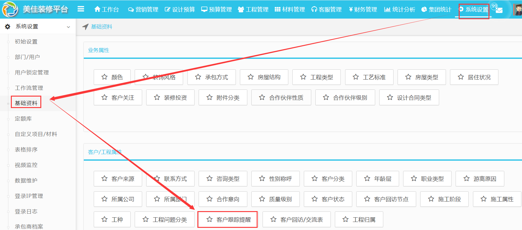第二步:在系統設置---基礎資料---客戶跟蹤提醒--完成設置