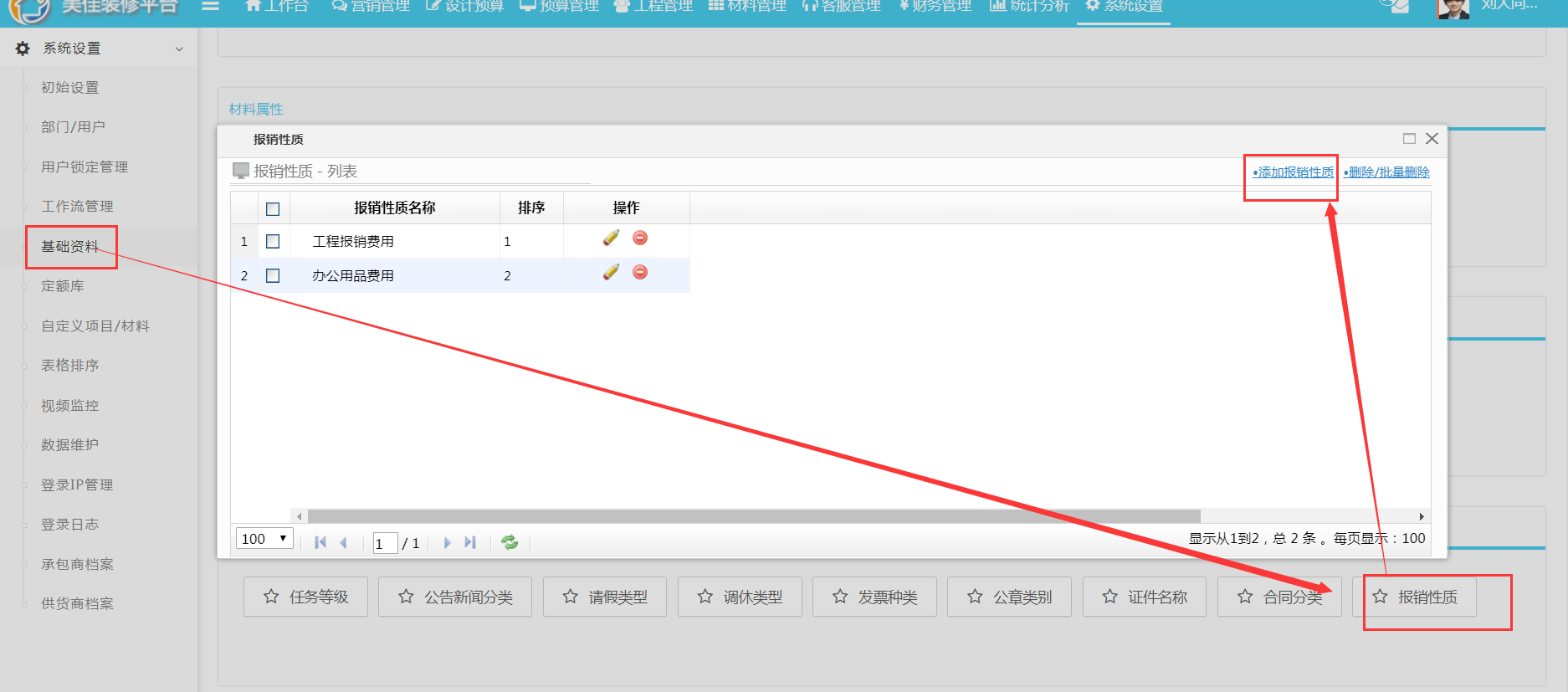 第二步:在基礎資料中完善報銷性質