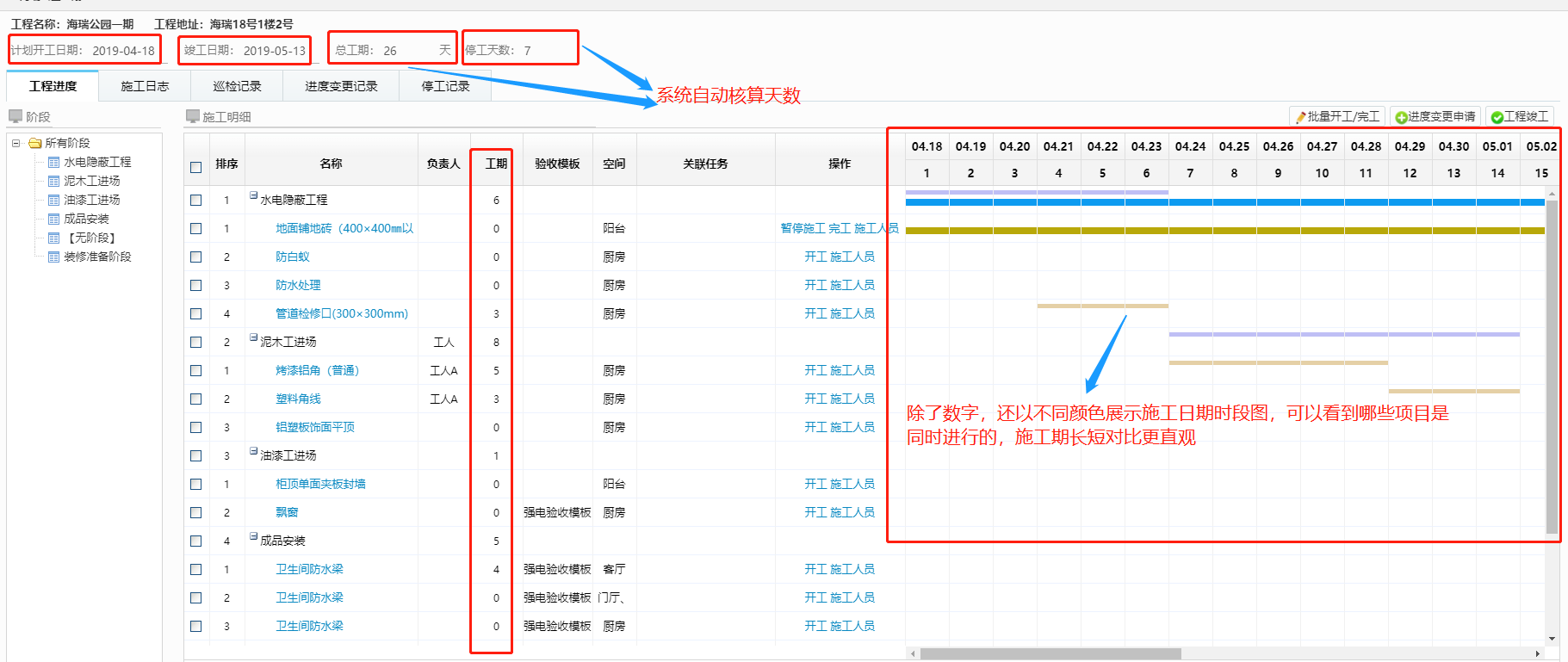 工人師傅的工期系統自動核算!不怕項目一下開工一下停工,也不用耗費大量人力去核查,只需要在停工的時候在系統里把客戶訂單狀態改為停工,開工時改為開工,系統根據這些數據自動生成核算,傻瓜式操作,比起人力核算方便快速又準確!這樣管理再多的工地也不怕啦,不怕混淆,不怕出錯,不怕理不清,就怕沒有美佳云裝。